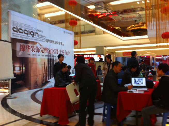 在一樓中央?yún)^(qū)域,近20位全國(guó)優(yōu)秀設(shè)計(jì)師接待業(yè)主的裝修咨詢;周邊液晶電視,不間斷的播放《堂杰支招》,增加業(yè)主對(duì)裝修的認(rèn)識(shí)。兩天的時(shí)間,來(lái)訪客戶絡(luò)繹不絕。一方面,眾多的城西區(qū)域業(yè)主在錦華找到了符合自己需要的設(shè)計(jì)師;另一方面,更多的業(yè)主通過(guò)與錦華優(yōu)秀設(shè)計(jì)師的溝通,加深了對(duì)家裝的認(rèn)識(shí)。