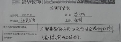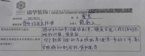 3月21日,公司在所有在編繪圖員和部分有潛力的實習生范圍中召開了一場繪圖員培訓。本次培訓由人力資源部牽頭,首先邀請了研發(fā)中心戴彩云老師對繪圖員的制圖規(guī)范和標準做了講解,對每季度繪圖員上繳作品情況也做了案例分析,其次是安排了主任設計師崔堯、高級設計師單清和堂杰工作室首席設計師張笑做了培訓分享。最后由人力資源包總闡述了設計部儲備人才的“雛鷹計劃”的具體實施步驟及考核方案。優(yōu)秀的繪圖員作為錦華內部的設計師儲備人員,將會在錦華這個優(yōu)秀的平臺上得以平穩(wěn)成長,錦華需要的是有志向、有方法、有心態(tài)的務實性人才,只要踏實認真一步一個腳印的遵循公司的成長體系,相信,“雛鷹”終將會成長為一只在錦華天空中自由翱翔“雄鷹”!