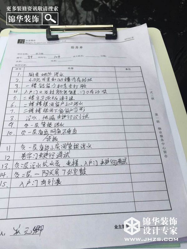 本次驗房,我們的工作人員針對房屋的水電,墻面,頂面,地面進行了詳細的檢查,并給出書面報告,為業(yè)主提供專業(yè)的房屋問題解決方案和建議。希望讓廣大富力業(yè)主在裝修前把房屋問題全面解決